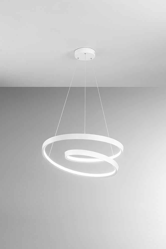 Collezione con struttura in metallo e alluminio verniciato a polvere nelle varie finiture. Diffusore in silicone. Nelle sospensioni cavi supporto/alimentazione in acciaio rivestito in PVC.
