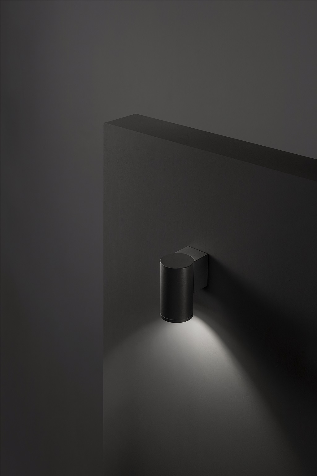 Collezione con struttura in metallo e alluminio verniciato a polvere nei vari colori. Diffusore in vetro. Colore: antracite opaco D.6,5 x H.12 x Pr.9,5 cm 1 x GU10 MAX 35W 220-240V 50/60Hz IP65 - Classe I