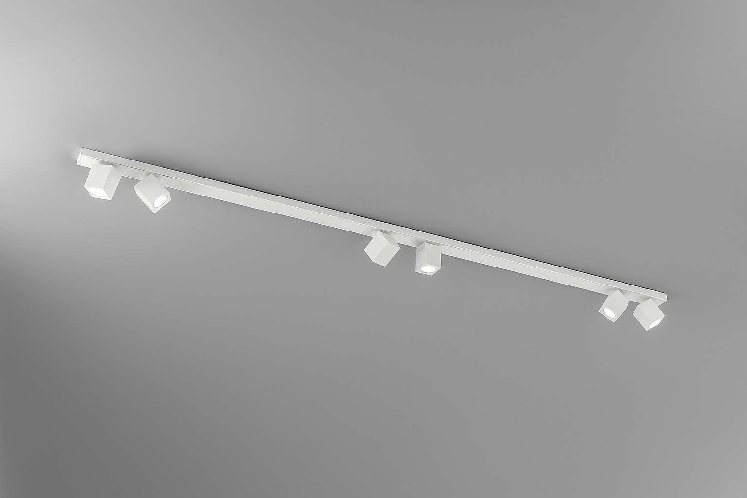 Collezione con struttura in alluminio verniciato a polvere con corpi luce orientabili (rotazione e inclinazione).